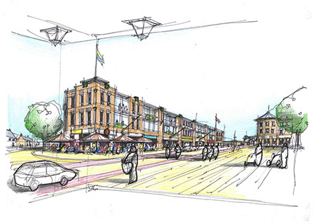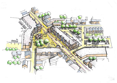 Rijen, studie voor 2.800 m2 commerciële ruimte en 14 appartementen.